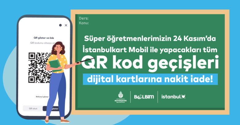 24 Kasım Öğretmenler Günü yaklaşırken, İstanbul Büyükşehir Belediyesi (İBB) ve iştirakleri bu günü, bir dizi hediyeler ile karşılıyor. BELBİM A.Ş.’nin kampanyası ile öğretmenler 24 Kasım’da tüm gün ücretsiz seyahat edebilecek. İstanbulkart Mobil’de Dijital Öğretmen Kart tanımlı olan öğretmenler, 24 Kasım tarihinde Marmaray, metro, metrobüs, otobüs ve şehir hatlarında QR kodla ödeme yaptıkları takdirde, geçiş ücretleri Dijital Öğretmen Kartlarına iade olacak. Öğretmenler gün içinde ne kadar geçiş yaparsa yapsın, ücretsiz geçişte herhangi bir limit söz konusu olmayacak. 24 Kasım’da Şehir Hatları’na bağlı vapur kafelerde öğretmenlere yüzde 15 indirim uygulanacak.