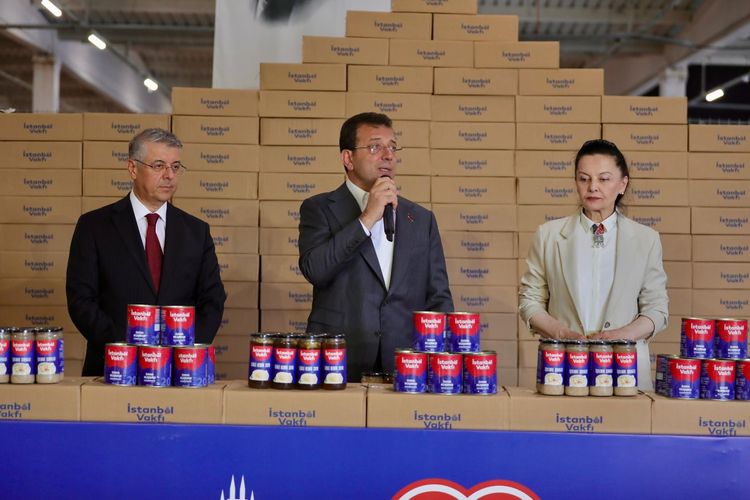 İBB Başkanı Ekrem İmamoğlu, İstanbul Vakfı’nın 5’nci kez düzenlediği Kurban bağışından elde edilen konserveleri, 200 bin haneye ulaştırılmak üzere yola çıkardı. Türkiye’nin en büyük sorununun açık ara ekonomi olduğunu vurgulayan İmamoğlu, “Tabii net olarak ifade edeyim. Akıl ve bilim, her konuda olduğu gibi aslında toplumun yaşadığı sıkıntılarda, ekonomik noktada her zaman kılavuz olması gereken prensiplerin tarifidir. Her zaman diyoruz; inşallah bu ekonomik kriz toplumumuzda derin hasarlar bırakmadan bir an önce toparlanır ve kaidelere, kurallara uygun bir biçimde süreç takip edilir. Ben bilirim değil, bu işi bilen insanlarıyla, liyakatli insanlarıyla süreçler yönetilir. Temennimiz budur” diye konuştu. Beş yılda 1 milyon aileye et ulaştırıldığını belirten İmamoğlu, “Biz bunu çok daha yüksek seviyeye taşımak isteriz. Büyükşehirde kurban kesilmesi konusunda sıkıntı yaşayan vatandaşlarımızın bu ibadetini en doğru şekilde yerine getirmek istediklerinde en üst seviyede hizmet sunmada iddialı kurum biziz, İstanbul Büyükşehir Belediyesi… Kesim zorluklarının İstanbul’da yaşattığı birtakım sıkıntılı anları ve ortamları da ortadan kaldırmış oluyoruz. Bu yönüyle, bu güzel ilişkinin, bu güzel paylaşımın, bu güzel ibadetin devam etmesini diliyorum. Vatandaşlarımıza teşekkür ediyorum. Allah hem hayırlarını hem de kurbanlarını kabul eylesin” ifadelerini kullandı.