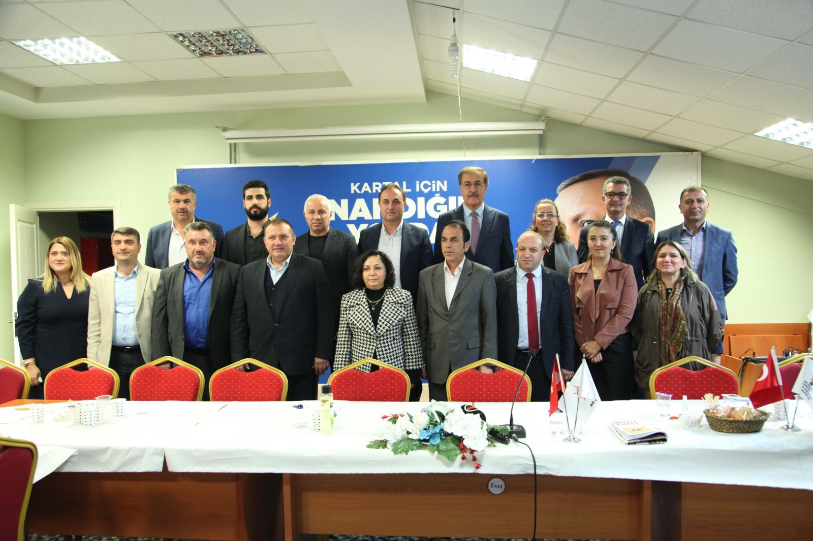 Bugün yenilenen bir İlçe yönetimiyle karşınızdayız. Yeni yönetimimizde, partimizde kuruluşundan bu güne çeşitli görevlerde bulunmuş arkadaşlarımızın yanı sıra, siyasete bu dönemde kazandırdığımız pırıl pırıl yepyeni Kartalın evlatları olan kardeşlerimiz var.