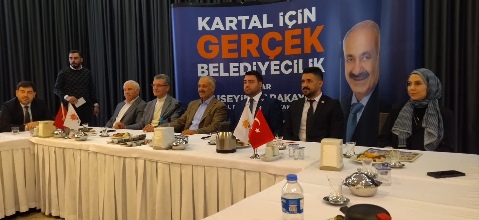 Kartal Ak Parti Belediye Başkan Adayı Mimar Hüseyin Karakaya sözü aldı. Karakaya Kartalın büyük bir köye dönüştüğünü, sosyo kültürel anlamda gerilediğini, insanların oturup zaman geçirecek bir yeri olmadığını, kentsel yapı konusunda binaların % 31 eski 1980 öncesinden kaldığını, 5 30’nun 1980 ile 2000 arasında yapıldığını, & geri kalanının 2000 sonra oluştuğunu söyledi. Kartalın mahalle ve köyleri olan yerleşim birimlerinin Kartal’ı fersah fersah geçtiğini bu durumun değişmesi gerektiğini belirtti. Toplantı, İttifak üyeleri ile fotoğraf çekilerek son buldu.