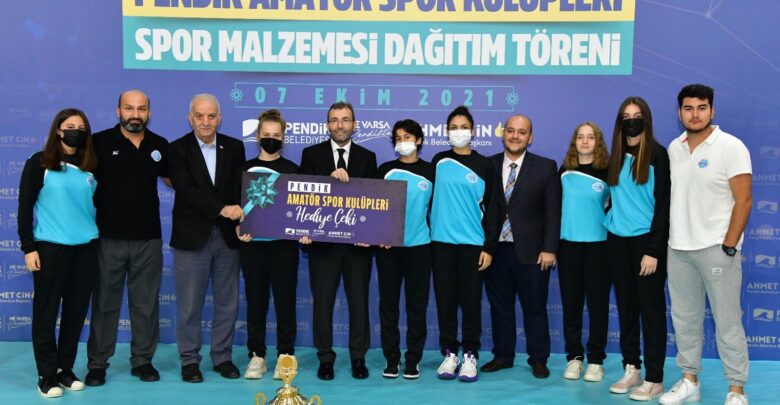 Sporcuyu ve spor kulüplerini destekleyen Pendik Belediyesi, Amatör Spor Kulüplerine Spor Malzemesi dağıtımı yaptı. Kurtköy Spor Salonu’nda gerçekleştirilen törene Belediye Başkanı Ahmet Cin, Gençlik ve Spor İlçe Müdürü Ramazan Aydoğdu, Pendik Amatör Spor Kulüpleri Birliği Başkanı Eşref Şeneroğlu ve ilçe genelinde faaliyet gösteren spor kulüpleri katıldı. Konuşmasında yeni açılan ve yapımı devam eden spor tesislerine dikkat çeken Başkan Ahmet Cin: “Geçtiğimiz sene bu yardımlarımızı spor kulüplerimize yapmıştık; ancak pandemi sebebiyle tören yapamamıştık. Pendik, spor ve gençlik faaliyetlerinde etkin olan bir ilçe. Geçenlerde yeni spor tesisimizin açılışını gerçekleştirdik ve altın madalya alan bir boksörümüz Busenaz kardeşimizin adını verdik. Önümüzdeki günlerde diğer yeni spor komplekslerimize olimpiyat şampiyonlarımızın ismini vermek suretiyle açacağız inşallah. Kanı kaynayan bir gençliğimiz var, ne yapsak az.” ifadelerinde bulundu.