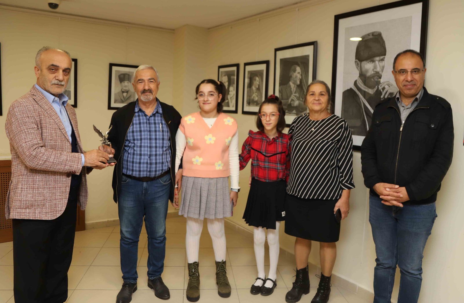 Kartal Belediyesi Başkan Yardımcısı Hüseyin Tozkoparan’ın açılışını gerçekleştirdiği sergiye Ressam Raif Zor’un ikiz torunları da eserleri ve şiirleri ile katıldı. Arya Berrak Zor’un Atatürk resimleri; Asya İdil Zor’un ise şiirleri ile katıldığı sergide Ressam Raif Zor tarafından yapılan Atatürk konulu resimler büyük beğeni topladı. Atatürk’ün farklı yaşlardaki pek çok halini yansıtan resimlerin yer aldığı sergide Kartal Belediyesi Başkan Yardımcısı Hüseyin Tozkoparan, Ressam Raif Zor’a emeklerinden dolayı teşekkür ederek Kartal heykelciği takdim etti. ‘Ata Biyografi’ sergisi bir hafta boyunca Kartal Belediyesi Hizmet Binası Fuaye Salonu’nda ziyarete açık kalacak.