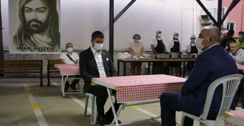 Pandemi tedbirleri kapsamında Kartal Cemevi Vakfı’nın bahçesinde düzenlenen oruç açma