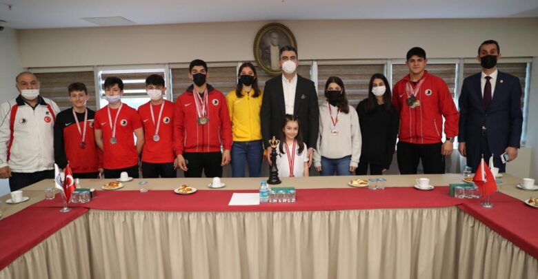 Başkan Gökhan Yüksel ödüllü sporcularla bir araya geldi