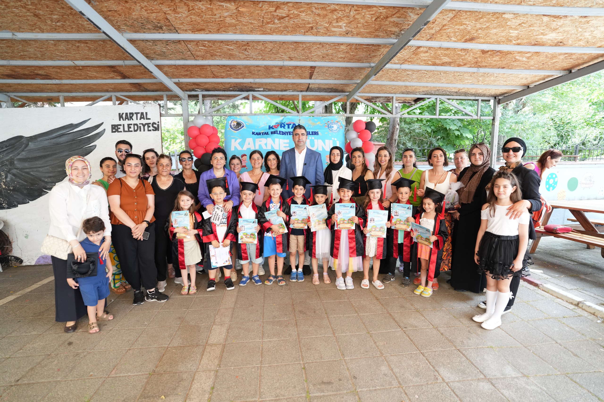 Kartal Belediyesi’ne bağlı 14 kreşte eğitim gören minik öğrenciler, 2023 – 2024 eğitim öğretim yılının ikinci dönemini tamamlayarak karnelerini aldı. Başkan Gökhan Yüksel, ilkokul hayatına geçen çocukları bu mutlu gününde yalnız bırakmadı. Kreş öğrencileri, karnelerini büyük bir sevinçle aldı. Kartal Belediyesi’nin 14 kreşinde eğitim gören öğrenciler için her bir kreşte ayrı ayrı karne töreni düzenlendi. Kreş öğrencilerinin karne sevincine Kartal Belediye Başkanı Gökhan Yüksel olmak üzere, Başkan Yardımcıları Dr. Dilek Kars, Olcay Özgön, Hayri Doğruyol ve Mustafa Ağdaş ortak oldu.