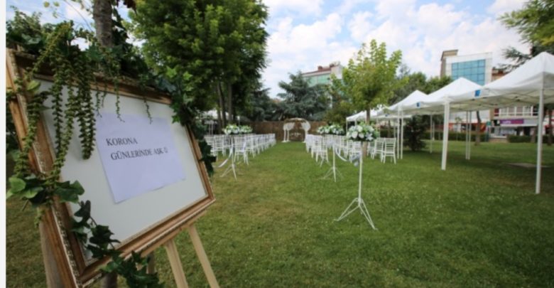 Kadıköy Belediyesi Evlendirme Dairesi’ndeki yoğunluk nedeni ile bahçede nikah törenini seçmek durumunda kalan çiftlere sürpriz hazırladı. Yeni korona virüs tedbirleri kapsamında Kadıköy’de nikahlar 2 şahit ve birinci dereceden yakınların katılımı ile törensiz olarak kıyılıyordu. Normalleşme sürecinin başlaması ile birlikte, Kadıköy Hasanpaşa’da bulunan belediye binasının bahçesi törenlere uygun olarak düzenlendi. Belediyeye daha önce evlilik başvurusu yaparak gün alan çiftlerin bir kısmının törenleri belediye bahçesine taşındı. Nikah törenleri için yeniden düzenlenen bahçeye nikah masası, tak, sandalyeler ve güneşlikler yerleştirildi. Sandalyeler sosyal mesafe kurallarına uygun olarak düzenlendi. Özel olarak süslenen belediye bahçesinde hafta sonları birer saatlik aralıklarla nikah kıyılacak. Törenlere 150 kişilik davetli kabul edilebilecek.