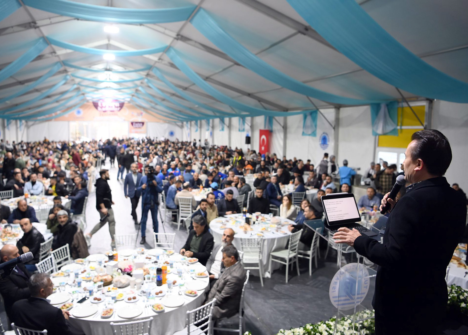 Tuzla Belediye Başkanı Dr. Şadi Yazıcı hem Tuzla’da hem de Hatay’ın Kırıkhan ilçesinde 7 gün 24 saat esasına göre belediyecilik hizmetleri aralıksız sürdüren Tuzla Belediyesi personeli ile iftar programında bir araya geldi. Tuzla Marina’da bulunan Tuzla Belediyesi etkinlik çadırında gerçekleştirilen programa binden fazla Tuzla Belediyesi personeli katıldı. Başkan Yazıcı, tüm Tuzla Belediyesi personeline toplu iş sözleşmesindeki haklarına ek olarak bin 500 lira bayram ikramiyesi müjdesi verdi.
