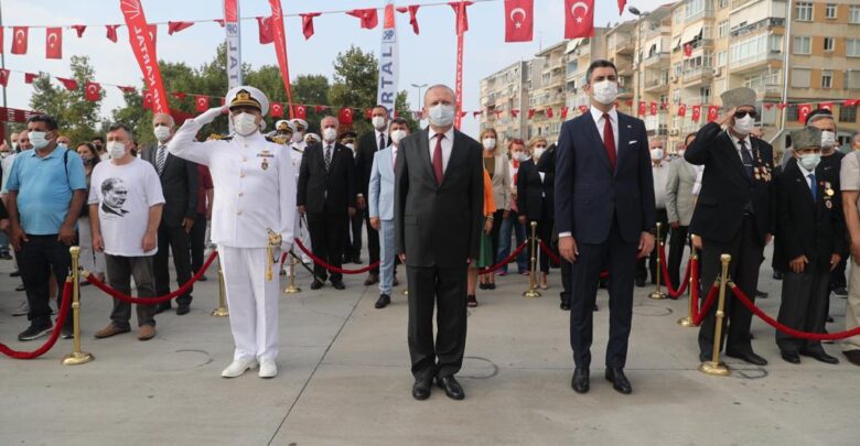 30 Ağustos 1922’de Dumlupınar’da Başkomutan Gazi Mustafa Kemal Paşa’nın önderliğinde zaferle sonuçlanan Büyük Taarruz’un 99. yıl dönümü kutlamaları, ilçe protokolünün Kartal Meydanı’nda yer alan Atatürk Anıtı’na çelenk takdimi ile başladı.