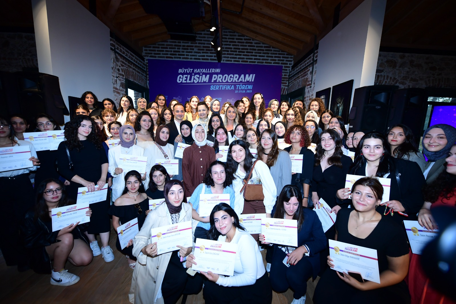 Fikir öncülüğünü Dr. Dilek Kaya İmamoğlu’nun yaptığı Büyüt Hayallerini projesi çatısı altında, İstanbul Vakfı ve KİPTAŞ iş birliği ile düzenlenen Büyüt Hayallerini Gelişim Programı’nın bu sene ikincisi gerçekleştirildi. Gençlerin iş hayatına hazırlık süreçlerini desteklemek amacıyla düzenlenen programa Cumhuriyetimizin 100. Yılında 100 Büyüt Hayallerini bursiyeri katıldı. Gençler, İBB iştirak şirketlerinin çalışma deneyimlerini saha gezilerinde gözlemledi, kendilerini kültürel ve sosyal olarak geliştirdi, aldıkları eğitimlerle iş hayatına hazırlandı. Programa katılan 100 kız öğrenci Büyükada Taş Mektep’te düzenlenen törenle sertifikalarını aldı. Törende konuşan Dr. Dilek Kaya İmamoğlu; “Bu zengin programın sadece ufkunuzu genişletmekle kalmadığına, size umut ve cesaret verdiğine de inanıyorum. Mücadelenizde, yolculuğunuz boyunca her zaman yanınızda olacağız. Siz Cumhuriyet kadınlarısınız, Atatürk’ün kızlarısınız, her şeyi başarabilirsiniz. Bunu hiç aklınızdan çıkarmayın.” ifadelerini kullandı.