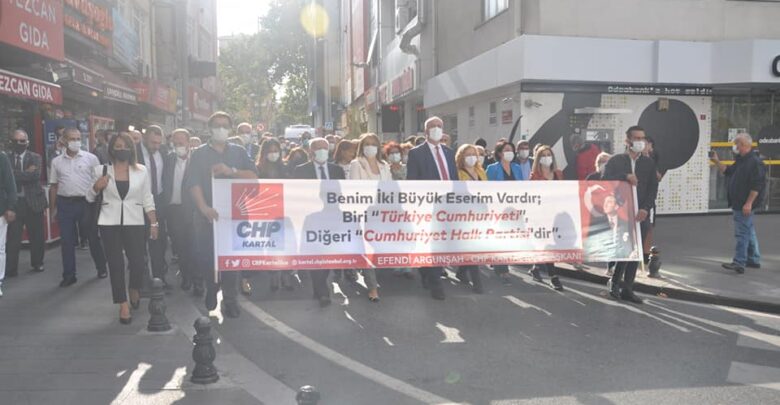 Cumhuriyet Halk Partisi Kartal İlçe başkanlığının düzenlediği törende, Atatürk anıta çelenk sunuldu, saygı duruşunda bulunuldu ve ardından İstiklal Marşı okundu. Çok sayıda partilinin katıldığı törende basın açıklamasını Parti adına CHP Kartal İlçe Başkanı Efendi Argunşah yaptı. Basın açıklaması öncesinde CHP Kartal ilçe Başkanı Efendi Argunşah , günün anlam ve önemine değinen konuşma yaptı, Argunşah , yapmış olduğu konuşmasında şu vurguya değindi;CHP’nin çok partili sisteme geçişi sağlayarak Türkiye’ye demokrasiyi getiren bir parti olduğunu söyledi. CHP’nin, Türkiye Cumhuriyeti vatandaşı olan herkes için olduğunu vurgulayan Argunşah, “Cumhuriyet Halk Partisi, kurulduğu günden bugüne çağdaş Türkiye Cumhuriyeti’nin temelleri olan devrimlerin ve cumhuriyetin koruyucusudur. Partimiz 98 yıldır çağdaşlığın, demokrasinin, insan haklarının, ulus devlet modelinin ve laikliğin yıkılmaz kalesi olarak ayaktadır” başaracağız başaracağız dedi.