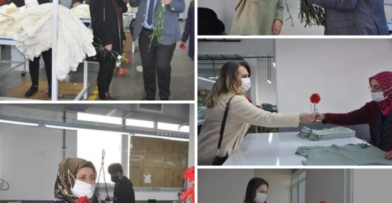 Cumhuriyet Halk Partisi Kartal İlçe Başkanı Efendi Argunşah , Kadın Kolları Başkanı Birgül Karababa,CHP Kartal İlçe Başkan yardımcıları ,CHP Kartal belediye meclis üyesi Yasin Ünder ,Kadın kolları yönetimi, 8 Mart Dünya Emekçi Kadınlar Günü dolayısıyla Cumhuriyet Mahallesinde bulunan tekstil atölyesinden çalışan kadınları iş yerlerinde ziyaret ederek karanfil hediye ettiler.