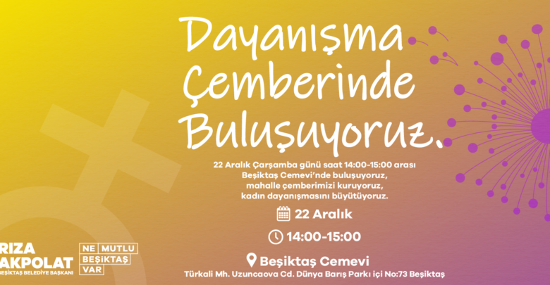 Kadın Dayanışma ve Yaşam Merkezimiz (KDYM), Beşiktaş’ın farklı noktalarında gerçekleştirdiği “Mahalle Buluşmaları”yla kadınlarla bir araya gelmeye devam ediyor. KDYM ekibimiz, 22 Aralık Çarşamba günü Öğrenme Meraklıları (ÖMEK) iş birliğiyle Türkali Mahallesi’nde yer alan Beşiktaş Cemevi’nde kadınlarla buluşacak.