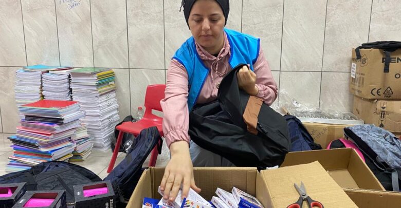 Deprem bölgesi Hatay’daki çocuklara kırtasiyeliklerle dolu çantalar gönderildi