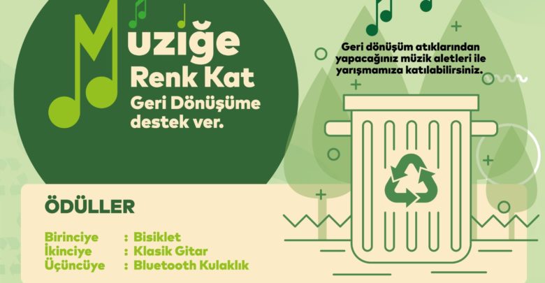 “Müziğe Renk Kat, Geri Dönüşüme Hayat Ver” sloganı ile hayat bulan geri dönüşüm temalı yarışmada vatandaşlar; pet şişe, plastik, cam, naylon, kâğıt, taş, tel, karton, lastik, pil, metal ve pil gibi atık malzemelerini kullanarak müzik aleti tasarlayacak. Son teslim tarihinin 5 Haziran saat 12.00 olduğu yarışmada yapılacak değerlendirmeler sonucu dereceye girenlerden birinciye bisiklet, ikinciye klasik gitar, üçüncüye ise bluetooth kulaklık hediye edilecek.