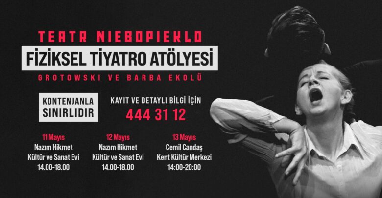 11-12 Mayıs tarihlerinde Nazım Hikmet Kültür ve Sanat Evi’nde, 13 Mayıs’ta Cemil Candaş Kent Kültür Merkezi’nde gerçekleşecek olan Fiziksel Tiyatro Atölyesi’ne Grotowski ve Barba Ekolü ile rol üzerinde çalışmanın birincil unsuru olan fiziksel eylem ve bir aktörün temel aracı olan beden çalışmalarını öğreneceğiz. Kayıt olmak ve bilgi almak için 444 31 12 numaralı Komşu Masa hattımızı arayabilirsiniz.