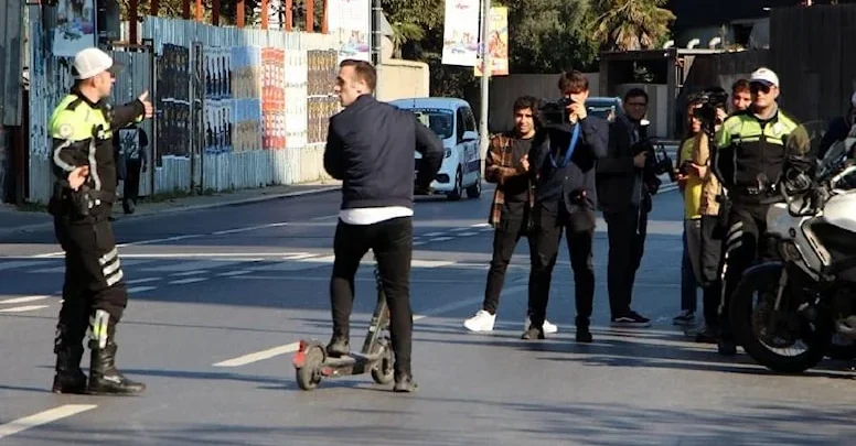 Beşiktaş’ta denetim yapan trafik ekipleri, fosforlu yelek giymeden elektrikli scooter kullananlara cezai işlem uygulandı. Bir scooter sürücüsünün “Gündüz görünür olmak için ne yapabilirim?” sorusuna polis, “Yeşil fosforlu yelek giymeniz lazım” karşılığını verdi.