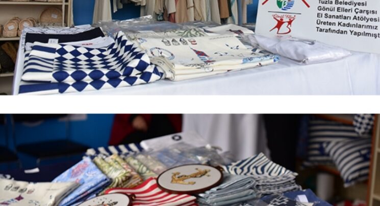 Bu yıl Tuzla Marina’da 5’incisi düzenlenen Uluslararası Boat Show Denizcilik Fuarı‘nda ihtiyaç sahibi kadınların ürettiği ürünler satışa sunuldu. Tuzla Belediyesi Gönül Elleri Çarşısı El Sanatları ve Ar-Ge Komisyonları tarafından kurulan stantta, el emeği ile üretip ​hazırlanan nevresim takımları, yastık kılıfları, yastıklar, masa örtüleri, el nakış havlular, ev dekorasyon ürünleri, geri dönüşüm malzemesinden yapılan ev aksesuarları,  bambu sepetler, maskeler, mutfak önlükleri, şile bezinden dokunan kıyafetler satışa sunuldu. Tuzla Belediye Başkanı Dr. Şadi Yazıcı’nın eşi ve Gönül Elleri Çarşısı’nın Kurucu Gönüllülerinden Dr. Fatma Yazıcı ile birlikte Gönül Elleri Çarşısı Yönetim Kurulu üyeleri standı ziyaret etti. Stantta satılan el emeği ürünlerden elde edilen gelirler ise, ev ekonomisine katkıda bulunacak şekilde yine ihtiyaç sahibi ailelere ulaştırılacak.