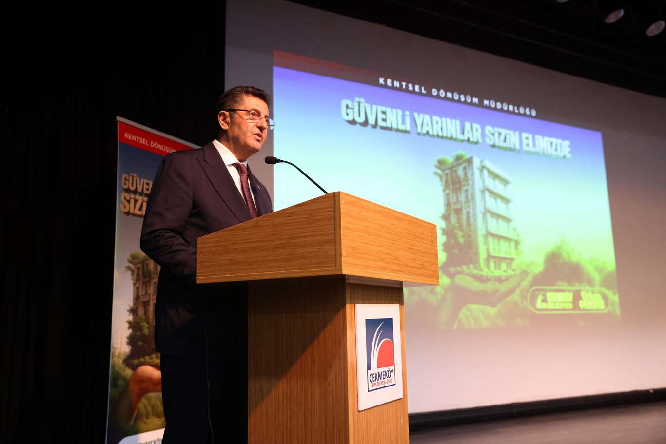 Programın açılış konuşmasını yapan Çekmeköy Belediye Başkanı Orhan Çerkez, “Hepinizi saygı ve sevgiyle selamlıyor, bu anlamlı sempozyuma hoş geldiniz diyorum. 23 Nisan 2025 tarihinde İstanbul’da yaşanan 6.2 büyüklüğündeki deprem, bize bir gerçeği bir kez daha hatırlattı: Deprem kapımızda ve biz buna hazır olmalıyız. Bu gerçekle yüzleşerek, ilçemizde riskli yapılardan güvenli konutlara geçişi sağlamak için kentsel dönüşüm sürecini hızlandırmak zorundayız. Çevre, Şehircilik ve İklim Değişikliği Bakanlığımız ile ortak bir anlayışla yürüttüğümüz çalışmalar neticesinde, 2000 yılı öncesinde yapılan ve denetimsiz olduğu tespit edilen 35 sitemiz dönüşüm önceliğine alınmıştır. Bugün burada, bu dönüşümün önünü açmak, halkımızı bilgilendirmek ve birlikte hareket etmek için bir araya geldik.İlçe belediyesi olarak biz, 21 Ocak 2025 tarihinde yürürlüğe giren 1/1000 ölçekli uygulama imar plan notlarıyla bu sürecin teknik altyapısını hazırladık. Bakanlığımız ise “Yarısı Bizden” desteğiyle, özellikle emekli ve dar gelirli vatandaşlarımız için dönüşümün mali yükünü hafifletti. Kentsel dönüşüm sadece bir inşaat süreci değildir. Bu bir hayat kurtarma sürecidir. Bugün attığımız her adım, yarının can güvenliğini, huzurunu ve sağlıklı yaşamını inşa edecektir. Burada bulunan tüm site yönetimleri, muhtarlarımız, teknik uzmanlarımız ve halkımızla birlikte, Çekmeköy’ü daha güvenli, daha yaşanabilir bir ilçe haline getireceğimize olan inancım tamdır. Bu süreçte emeği geçen tüm kurumlara, katkı sağlayan tüm paydaşlarımıza ve bu salonda bizimle olan siz kıymetli komşularıma teşekkür ediyorum. Unutmayalım: Depreme dayanıklı bir Çekmeköy hep birlikte mümkündür. Güvenli yarınlar sizin elinizde, bizim elimizde… Hep birlikte başaracağız.” dedi.
