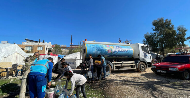 Tuzla Belediyesi ekipleri, Hatay’ın Kırıkhan ilçesinde bulunan mahallelere ve kırsal kesimlere temiz su desteğini 7 gün 24 saat esasına göre sürdürüyor. Tuzla Belediye Başkanı Dr. Şadi Yazıcı’nın öncülüğünde devam eden çalışmalarda Tuzla Belediyesi ekipleri, su tankerleri ile çadır kentlere, temiz su taşıyarak depremzedelere destek oluyorlar. Bu kapsamda ekiplerin her gün gittikleri Kırıkhan’ın Alsancak Mahallesi’nde bir arada bulunan 30 çadıra su dağıtmak için giden ekiplere, depremzedeler yöresel yemek hazırlayarak çay ikram ettiler. Hep birlikte yenilen yemeğin ardından depremzede bir kadın,” Allah devletimizden bin kere razı olsun” dedi.