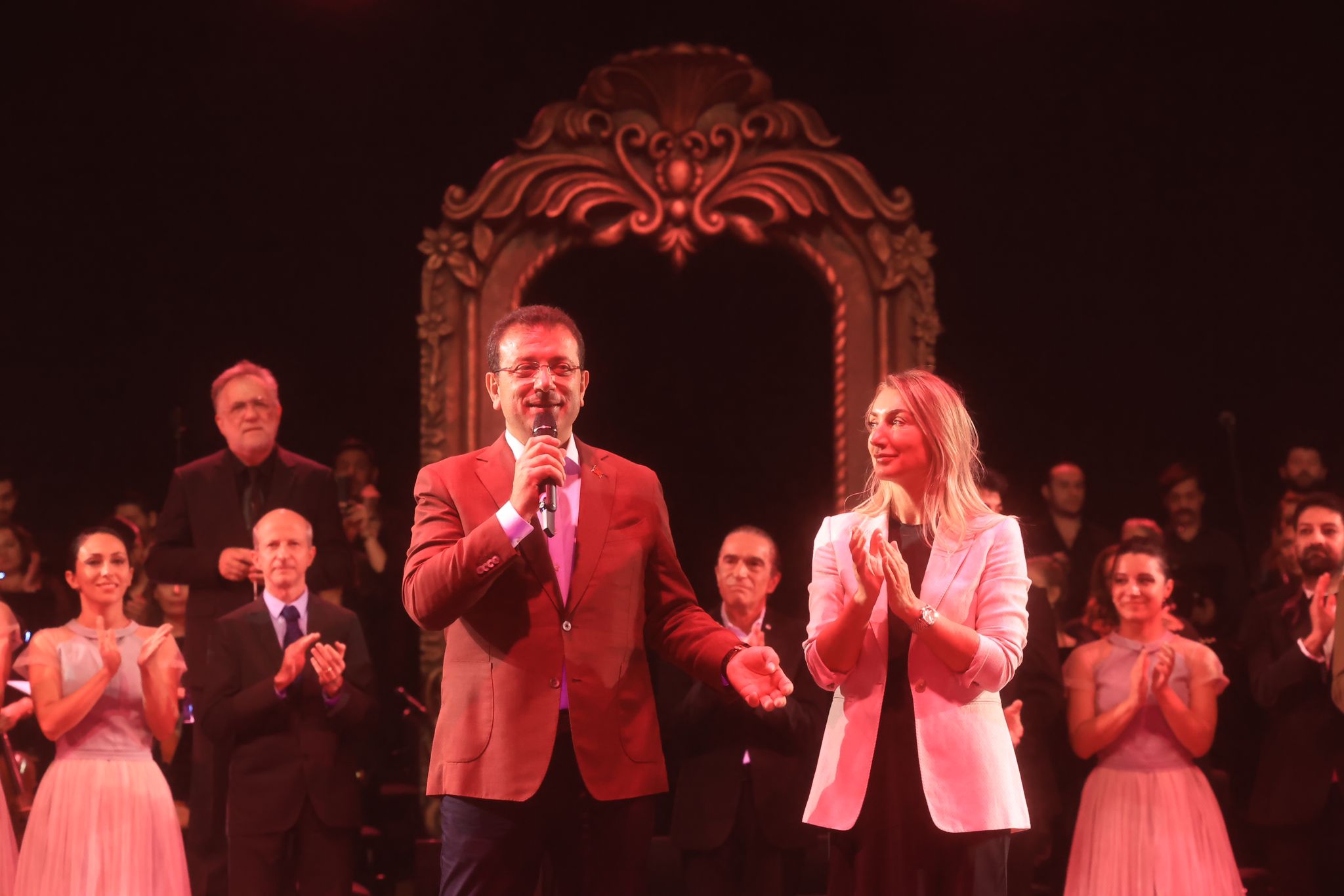 İmamoğlu çifti, ilk kez seslendirilen “100. Yıl Marşı”na da sahnede, sanatçılarla birlikte eşlik etti.