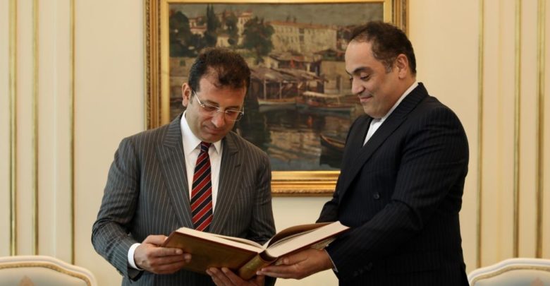İstanbul Büyükşehir Belediye (İBB) Başkanı Ekrem İmamoğlu, İran İslam Cumhuriyeti İstanbul Başkonsolosu Javad Maboudi Far’ı, Saraçhane’deki makam odasında ağırladı. Far, görüşme öncesinde İmamoğlu’na el yazması özel basım Kur’an-ı Kerim takdim etti.
