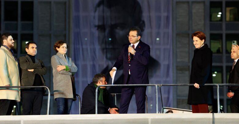 İYİ Parti Genel Başkanı Meral Akşener ve İBB Başkanı Ekrem İmamoğlu, Anadolu 7. Asliye Ceza Mahkemesi’nin verdiği hukuksuz karar sonrasında, Saraçhane’de, on binlerce vatandaşla buluştu. “Bugün iktidarda, yarından çok korkan bir irade var” diyen Akşener, “İnsanlar, korktuğu zaman ceza verirler. İnsanlar, korktuğu zaman zulüm yaparlar. İnsanlar, korktuğu zaman haksızlık yaparlar. Onun için bugün, Ekrem kardeşim için verilen bu kararın arkasında bir büyük korku var. Size duyulan korku var. Demokrasiye duyulan korku var. Millet iradesine duyulan korku var. Evet bunlar korkuyor. Ama biz, korkmuyoruz. ‘Kahrolsun istibdat yaşasın hürriyet’ diyoruz” ifadelerini kullandı. “Ben buradan sadece İstanbul’a değil; başkentimiz Ankara’ya, İzmir’e, Hakkari’ye, Edirne’ye, Sinop’a, Adana’ya, Diyarbakır’a, Trabzon’a, bütün şehirlere sesleniyorum” diyen İmamoğlu da “Niye biliyor musunuz? Bugün burada yaşatılan şeyi, ülkemizin her yerinde insanlarımıza yaşatılabilir. Milletçe ayağa kalkacağız. Bizi mahkum etmeye kalkanları pişman edeceğiz. Nerede edeceğiz? Sandıkta edeceğiz, sandıkta. Aradan 3,5 sene geçmiş olabilir. Ama benim hala gençliğim var, gençliğim. Hala umudumuz yüksek. Benim gibi, milyonlarca ceketini çıkarıp, kollarını sıvayacak Türk milleti var. Adalete susamış, Türk milleti var. Sizden, söz almak istiyorum. 2023’te her şey çok güzel olacak. Ankara duysun; bugün o mahkemeye müdahale eden akıl duysun” şeklinde konuştu. “Yarın, yine burada olacağız” diyen İmamoğlu, vatandaşlara, “Sizleri davet edeceğiz ve dertleşeceğiz. Başta CHP Genel Başkanımız Sayın Kemal Kılıçdaroğlu olmak üzere, çok kıymetli İYİ Parti Genel Başkanı Sayın Meral Akşener ve altılı masanın diğer siyasi parti liderleriyle birlikte, bir arada olacağız. Demokrasi için mücadele edeceğiz” çağrısında bulundu.