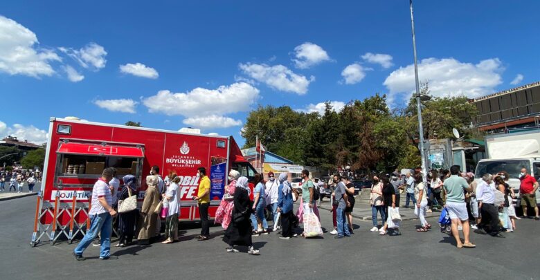 Kentin farklı noktalarında İstanbul halkı için hizmet veren Mobil Büfeler, bu defa paylaşmanın simgesi aşure dağıtımı için yollardaydı. Mobil Büfelerden İstanbul’un en hareketli noktalarından Üsküdar, Kadıköy ve Eyüpsultan gibi yoğun insan trafiğinin olduğu 15 meydanında vatandaşlara aşure ikram edildi.
