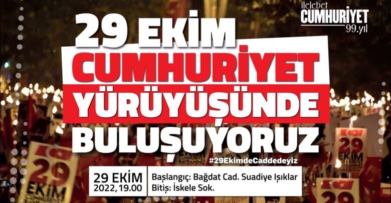 29 Ekim Cumhuriyet Bayramı kutlamalarının doruk noktasını ise bu yıl da ‘Cumhuriyet Yürüyüşü’ oluşturuyor. Kadıköy Belediyesi, Bağdat Caddesi Suadiye Işıklar’da saat 19.00’da başlayacak yürüyüş için hazırlıklarını tamamladı. Cumhuriyet sevdalıları, Türk bayrakları ve Atatürk posterleriyle 29 Ekim Cumartesi akşamı Bağdat Caddesi’nde buluşacak. Yürüyüş Suadiye Işıklar’da başlayıp, İskele Sokak’ta son bulacak.