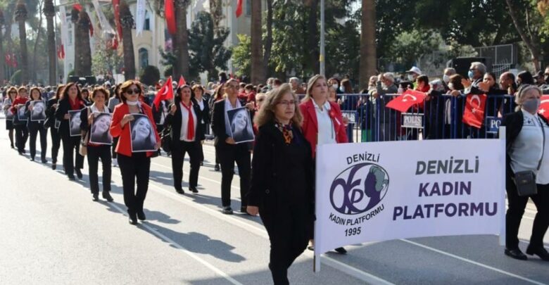 Denizli’de 29 Ekim Cumhuriyet Bayramı coşkuyla kutlandı. Valilik önündeki törende gösterilerin ardından resmi geçit töreni yapıldı. Denizli Kadın Platformu geçit töreninde önceki gün Furkan Zıbıncı tarafından katledilen Şebnem Şirin’in fotoğrafını taşıdı.