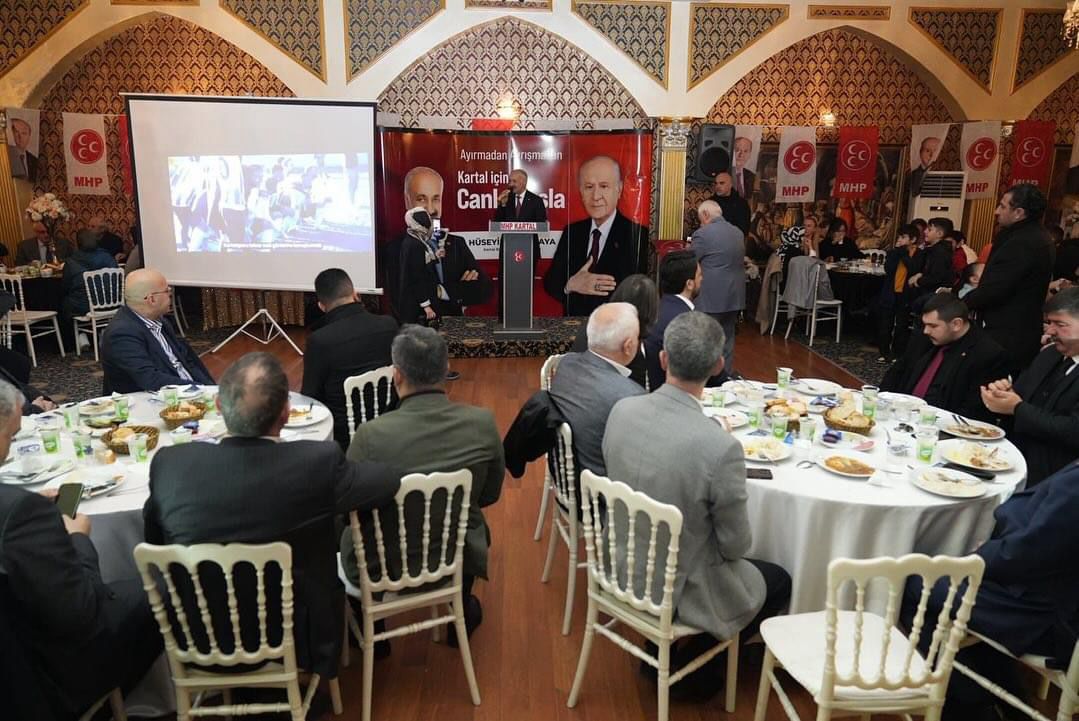 Cumhur İttifakı bileşenleri düzenlenen iftar programında bir araya geldi. MHP Kartal İlçe Başkanlığı tarafından düzenlenen programa AK Parti Kartal Belediye Başkan Adayı Mimar Hüseyin Karakaya, AK Parti Kartal İlçe Başkanı Nimet Gündoğdu, MHP Kartal İlçe Başkanı Zübeyir Kurt, BBP Kartal İlçe Başkanı Halit Karaaslan, sivil toplum kuruluşu temsilcileri ve çok sayıda partili katıldı. Mimar Karakaya, seçime kadar tam saha pres yapılmasını ve sandıklara sahip çıkılmasını istedi.