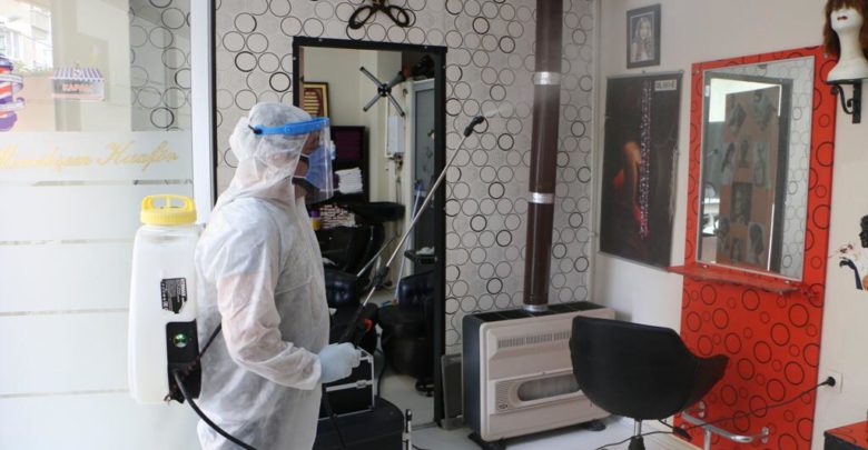 Kartal Belediyesi, COVİD-19 salgınına yönelik çalışmalarına devam ediyor. Büyük bir özveri ile virüs salgınının gündeme geldiği ilk andan itibaren vatandaşın sağlığını korumaya yardımcı olmak için 1 milyon metrekareden fazla kapalı alanın dezenfekte çalışmalarını gerçekleştiren ve söz konusu çalışmalara aralıksız devam eden Kartal Belediyesi, 11 Mayıs 2020 tarihinde berber ve kuaförlerin kademeli olarak açılacağının duyurulması ile birlikte önlemlerini aldı. Kartal Belediye Başkanı Gökhan Yüksel’in talimatı ile günler öncesinden Berberler ve Kuaförler Odası ile koordineli çalışarak, işletmelerin maske ve hijyen eksiğini gideren Kartal Belediyesi, temin ettiği malzemelerle iş yerlerinin sürekli olarak hijyenik şekilde tutulmasını sağlayarak hem çalışanların hem de müşterilerin güvenli şekilde hizmet alışverişinde bulunması amaçlıyor. Öte yandan bugün itibari ile kapılarını açan berber, kuaför ve güzellik salonları için de teyakkuza geçen ekipler, önceden belirlenen adresleri tek tek dolaşarak söz konusu işletmelerin ilaçlama çalışmalarını gerçekleştirdi. Çalışmalar kapsamında Kartal Belediyesi Temizlik İşleri Müdürlüğü’ne bağlı alanında uzman ekipler, ilçede bulunan berber, kuaför ve güzellik salonlarını nano gümüş teknolojisi kullanılarak virüs ve bakterilerden arındırdı.