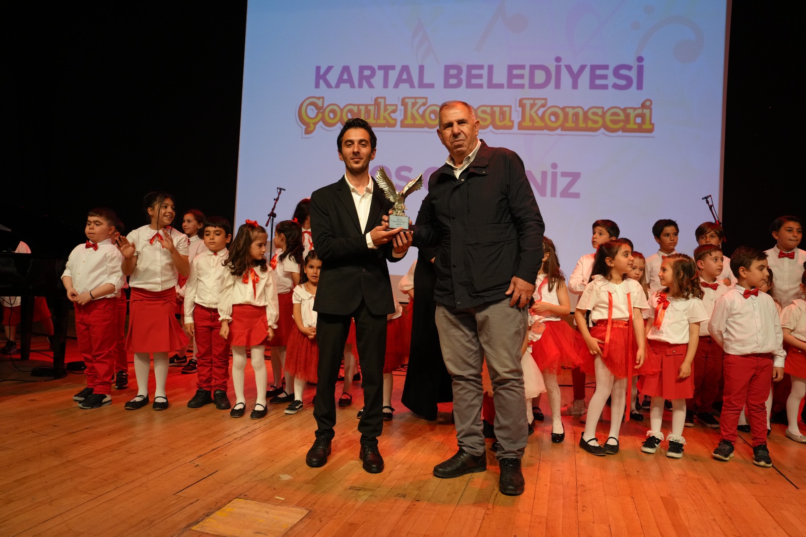 Kartal Belediye Başkanı Gökhan Yüksel adına konsere katılan Belediye Meclis Üyesi Sadettin Topal, katkılarından dolayı Şef Pınar Celep’e kartal heykelciği, solistler Şamsal İsmail ve Gülzar İsmail’e ise çiçek takdim etti.