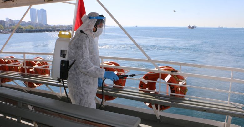 Kartal Belediyesi tüm dünyayı sarsan Korona virüsüne karşı ilçedeki dezenfekte çalışmalarını aralıksız sürdürüyor. Çalışmalar kapsamında, Kartal-Adalar İskelesi’nde ve tüm deniz ulaşım araçlarında dezenfekte çalışmaları gerçekleştirildi.