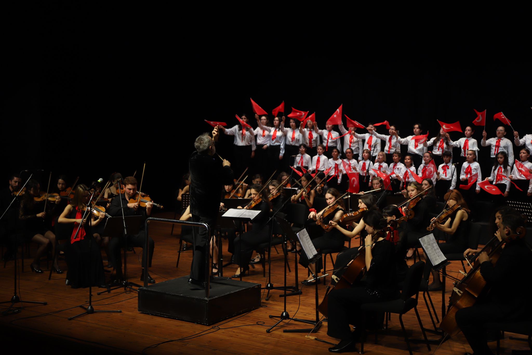 Şef-solistliğini Hakan Şensoy’un yaptığı Gençlik Senfoni Orkestrası, konser performansı boyunca; Selanik Türküsü, Sarı Gelin, İzmir Marşı, 10. Yıl Marşı gibi eserleri seslendirdi. Gecenin sonunda, orkestranın sahne performansı, izleyenler tarafından ayakta alkışlandı.