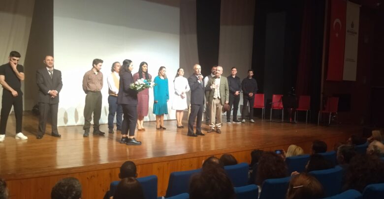 Genç tiyatrocuların sunumundan sonra Kartal Belediye Başkan Yardımcısı Ali Apaydın sanat akademisi yönetmenine Kartal Belediye Başkanı Gökhan Yüksel adına bir çiçek sundu.