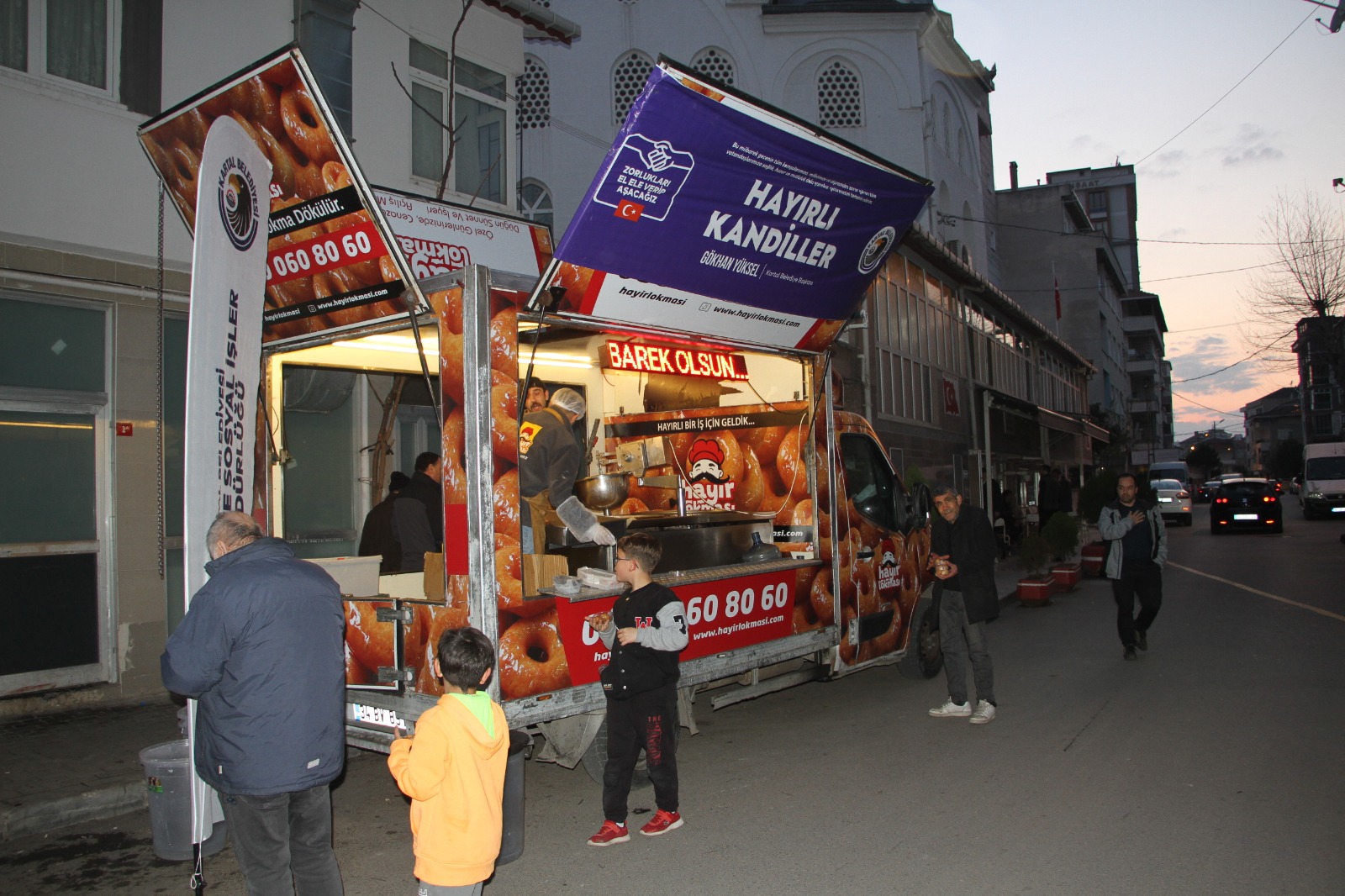 Kartal Belediyesi çalışanları da ilçede bulunan Kordonboyu Kahramanlar Camii, Topselvi Merkez Camii, Yakacık Merkez Camii ve Uğur Mumcu Adnan Kahveci Camii önünde pişen sıcak lokmaları, mobil ikram araçlarından kandil ve namaz için camilere gelen ve yoldan geçen vatandaşlara ikram etti.