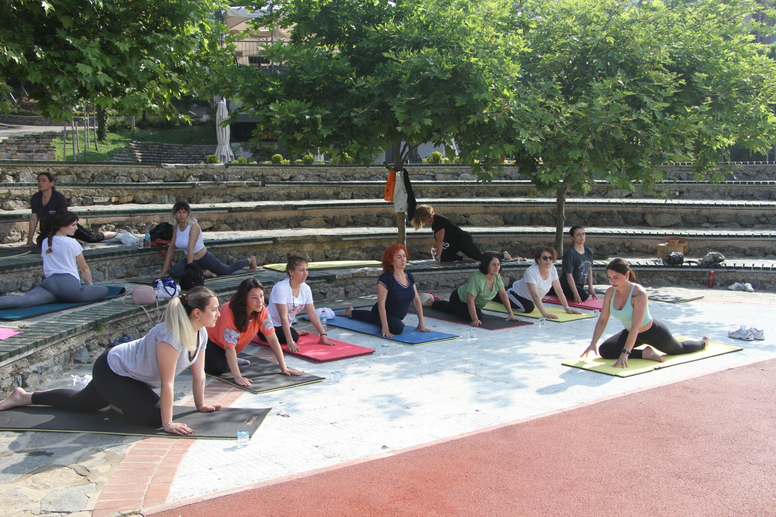 Havanın güneşli olması nedeniyle vatandaşların yoğun ilgi gösterdiği etkinlikte, yoga eğitmeni Selda Yalçınkaya’nın rehberliği ile 1 saat boyunca yoganın temel hareketlerini gerçekleştiren kadınlar, hareketleri uygularken hem eğlendi hem de zaman zaman zorlandı.