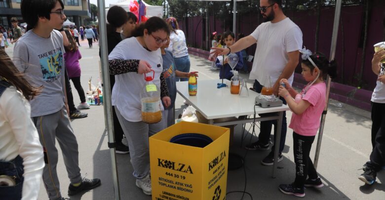 Etkinlikte ayrıca öğrencilerin evlerinde biriktirerek getirdikleri atık yağlar da bio dizel olarak geri dönüştürülmek üzere toplandı.