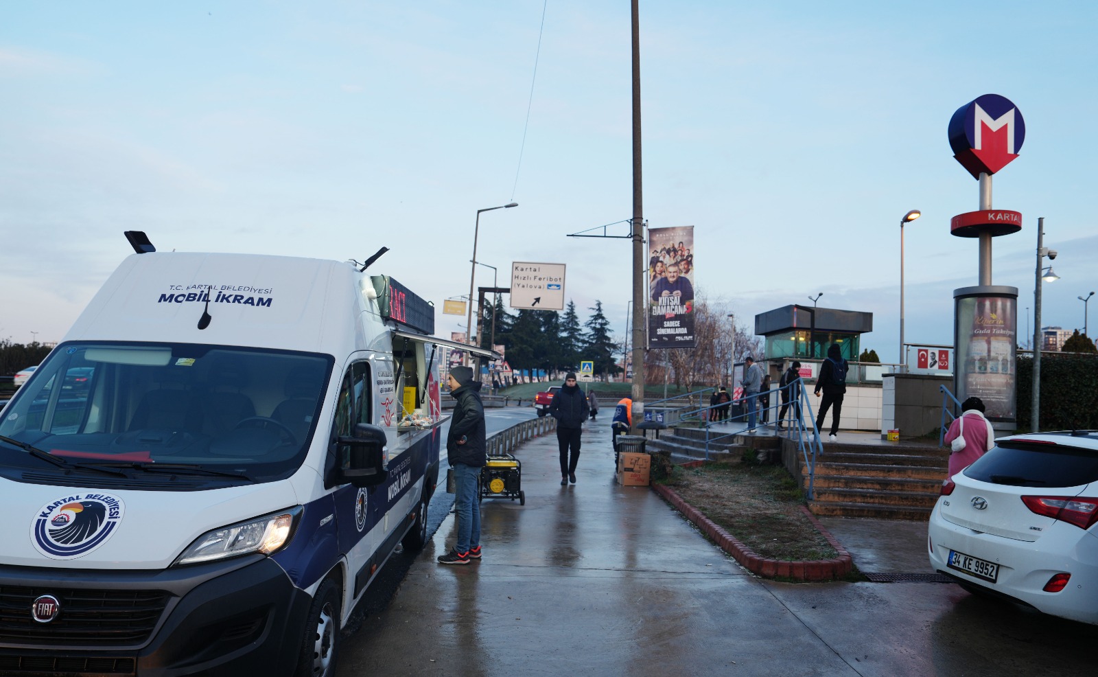 Sabahın erken saatlerinden itibaren Kartal’da özellikle ulaşım aksının en yoğun olduğu Kartal metro ve Soğanlık metro durakları çıkışlarında hizmet vermeye başlayan ekipler, işlerine giden ve yoldan geçen vatandaşları sıcak tutmak amacı ile çorba ve çay ikramında bulunuyor.