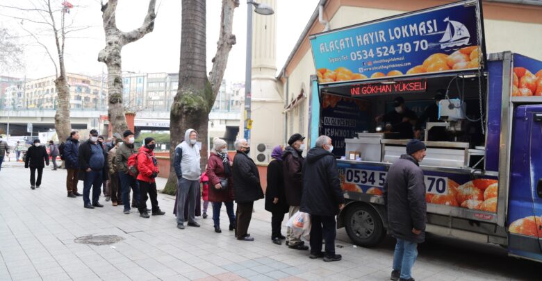 Kartal Belediyesi Sosyal Yardım İşleri Müdürlüğü tarafından ilçede bulunan beş caminin önüne kurulan mobil araçlarla vatandaşlara lokma ikramında bulunuldu.