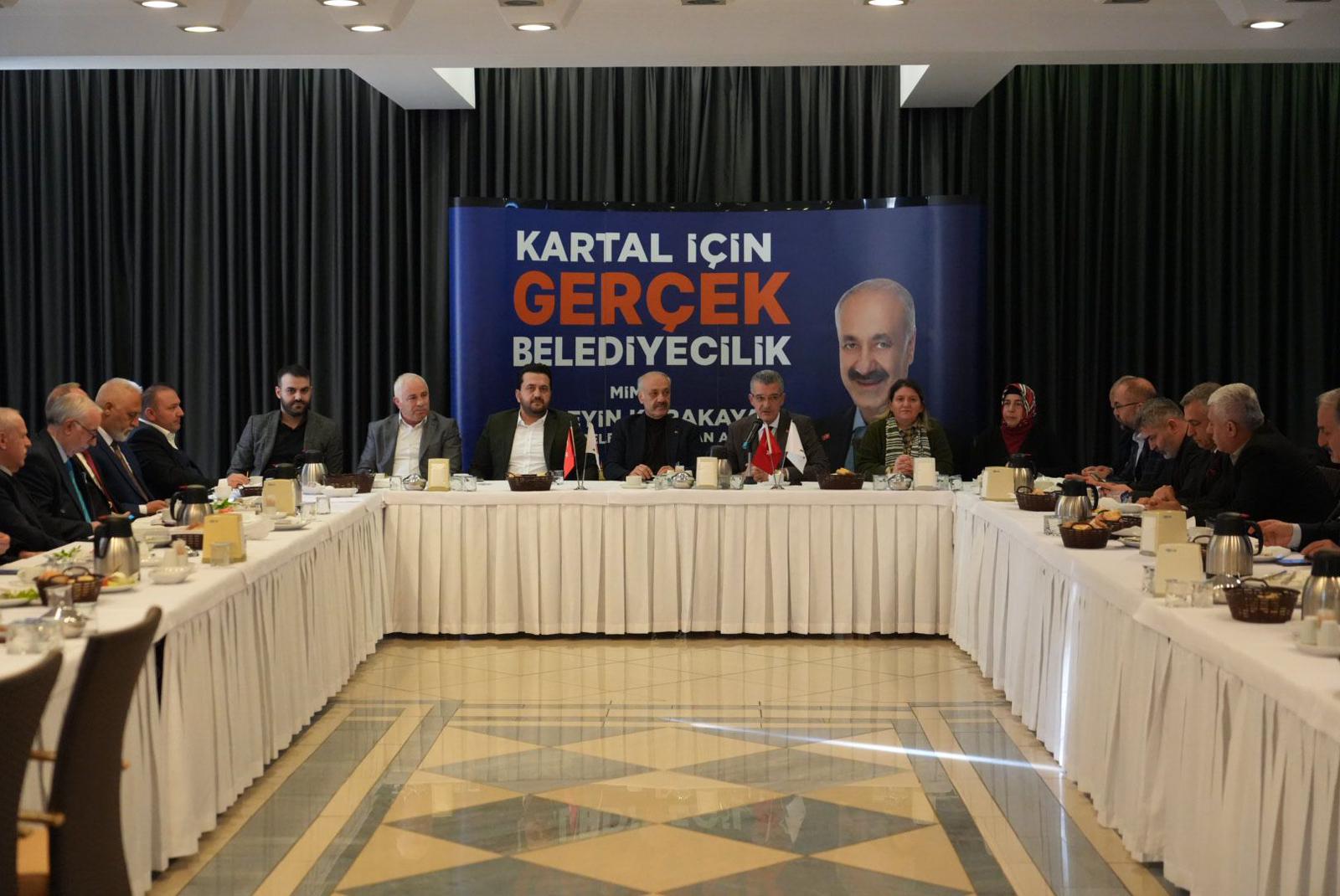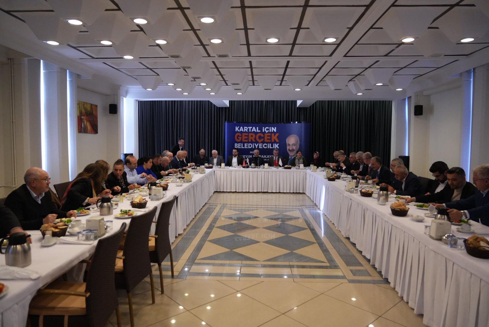 Toplantı AK Parti Kartal ilçe başkanı Nimet GÜNDOĞDU, Belediye Başkan adayı Mimar Hüseyin KARAKAYA, meclis üyesi Haydar GÖKSOY, ilçe yürütme kurulu üyeleri, ilçe gençlik kolları başkanı, ilçe kadın kolları başkanı ve mahalle muhtarlarının katılımıyla gerçekleşti.