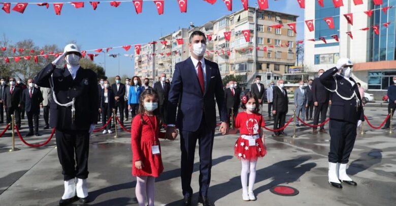 Atatürk Anıtı’na çelenk sunularak başlayan tören, bir dakikalık saygı duruşunun ardından İstiklal Marşı’nın okunmasıyla son buldu.