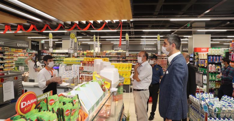 Denetim boyunca, Başkan Gökhan Yüksel ve Kaymakam Abdullah Demir, virüsün yayılmaması için esnafın aldığı tedbirleri inceleyerek gerekli uyarılarda bulundu.