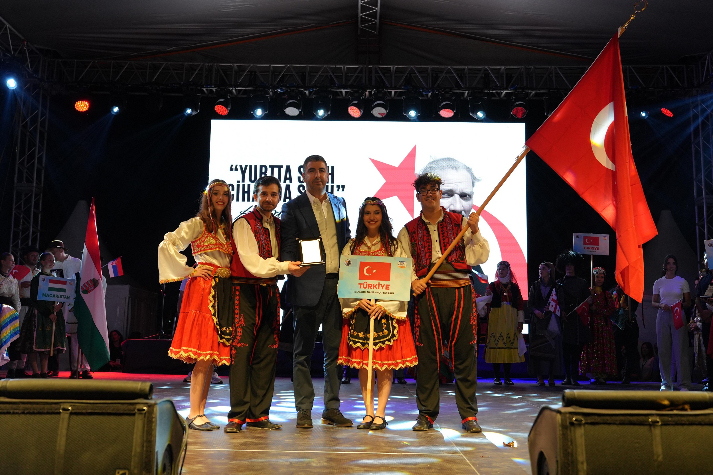Dans ekiplerinin sahne gösterilerinin ardından Kartal Belediye Başkanı Gökhan Yüksel, tüm dans grupları ile birlikte sahneye çıktı. Yoğun alkışlar eşliğinde sahneye çıkan Başkan Gökhan Yüksel, 1 Eylül’de Kartal’dan tüm dünyaya evrensel bir barış mesajı verdiklerini ifade ederek, “Bugün, 1 Eylül Dünya Barış Günü. Kartal’da çok önemli misafirlerimizi ağırladık. Barışın tesisi için her birimize ayrı bir görev düşüyor. Kültür ve sanatın dili yok. Burada 9 farklı ülkeden hep beraber buluştuk. Ne kadar birbirimize benzediğimizi gördük.  Gazi Mustafa Kemal Atatürk’ün dediği gibi, ‘Yurtta sulh, cihanda sulh.” Kartallılar olarak, herkese örnek olduk. Bizleri yalnız bırakmayan tüm misafirlerimize ve komşularımıza sonsuz teşekkür ediyoruz.” diye konuştu.