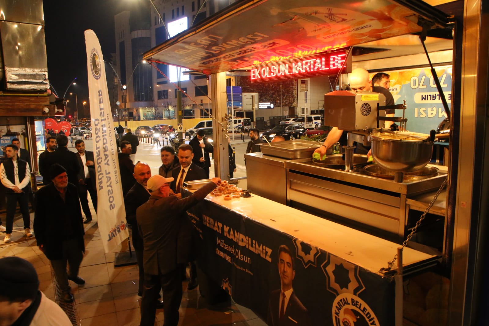 Kartal Belediyesi, Berat Kandili dolaysıyla ilçedeki 10 farklı noktada vatandaşlara hayır lokması ikramında bulundu.