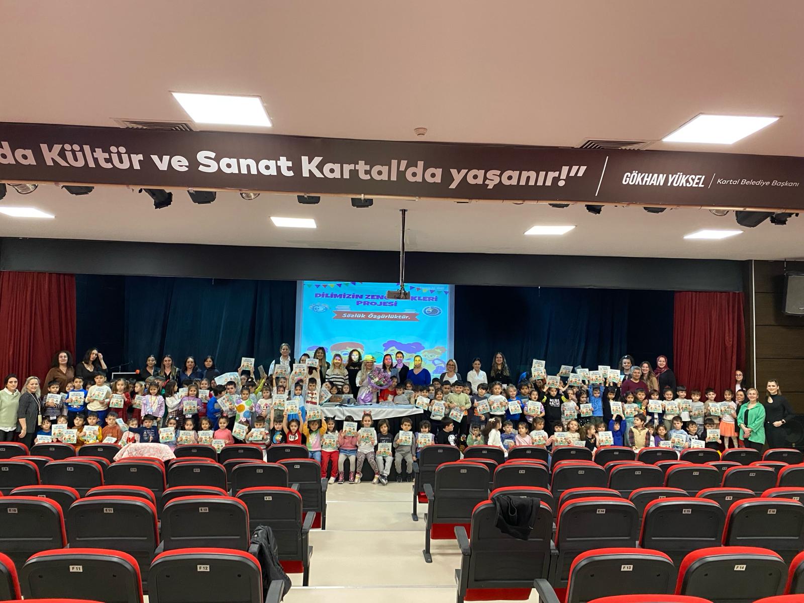 Yazar Sinem Eren, ‘Dilimizin Zenginlikleri’ projesi kapsamında Kartal Belediyesi kreş öğrencileri ile buluştu. ‘Dilimizin Zenginlikleri Sözlük Özgürlüktür’ projesi kapsamında öğrencilerin dilin zenginliğini tanıması, kültür taşıyıcısı olan sözcüklerle buluşması ve buna bağlı olarak dilin iyi kullanılmasını ve düşünce dünyasını geliştirmesi amaçlanıyor.