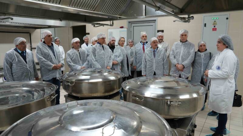 Kartal Belediye Başkanı Gökhan Yüksel’i temsilen Başkan Yardımcı Mustafa Ağdaş’ın da katıldığı programda muhtarlara aşevinin üretim yapıldığı alanlar özel kıyafet ve hijyen kurallarına uyularak gezdirildi. Her gün yoğun bir çalışma programıyla hizmet veren Kartal Belediyesi Neriman-Sami Türkdoğan Aşevi ve Gıda Bankası’nı ziyaret eden Kartallı Muhtarları, Sosyal Yardım İşleri Müdürü Gamze Yavuzer ve Aşevi Sorumlusu Özlem Doğan karşıladı. Kartal Belediyesi Başkan Yardımcısı Mustafa Ağdaş ve Muhtarlıklar Müdürü Banu Kocadağ’ın da eşlik ettiği muhtarlar, önce hijyen istasyonunda ellerini yıkadı, ardından bone, önlük ve galoştan oluşan hijyen önlemlerini yerine getirerek aşevinin bölümlerini inceledi.
