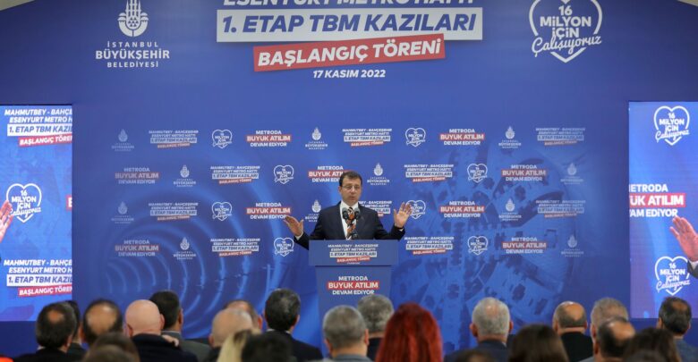 İBB; 5 ilçeden (geçecek, 10 istasyonlu, 18,5 kilometre uzunluğundaki Mahmutbey-Bahçeşehir-Esenyurt metro hattının tünellerini delecek 2 TBM makinasını şantiyeye indirdi. Esenyurt, Beylikdüzü, Avcılar, Büyükçekmece, Küçükçekmece ve Başakşehir’in bir bölümü içine alan bölgede yaklaşık 3,5 milyon kişinin yaşadığı bilgisini paylaşan İmamoğlu, “Böylesi bir alan, raylı taşıma olmadan kentle bağını kurar ise, oradaki insanlara büyük zulüm çektirirsiniz. O bakımdan gelir gelmez, bu işleri ele aldık. Görevi aldığımızda, ne acı ki, bu hattın ne şantiyesi vardı ne de projesi tamdı. Biz, buraya 2020 yılı sonunda 220 milyon euroluk bir kaynak sağladık. Ve başlangıç yaptık” dedi.