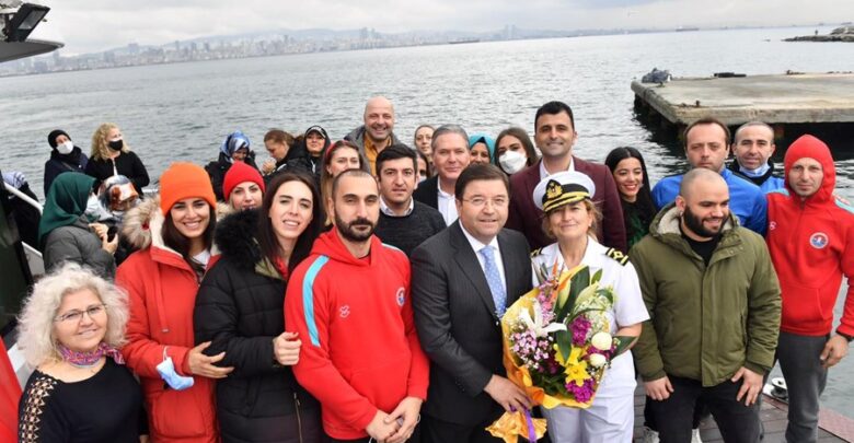 Etkinlikte Türkiye’nin İstanbul Boğazı’nda kaptanlık yapan ilk kadını olan Mine Kilci’ye plaket verildi. (09.03.2022)