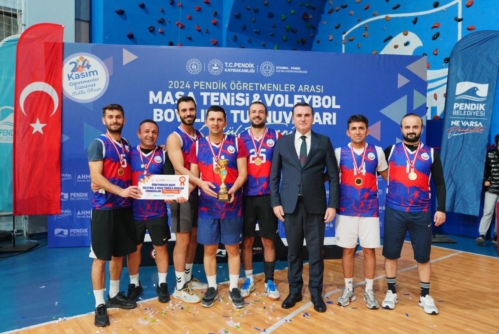 Pendik Belediyesi öncülüğünde, Pendik Kaymakamlığı ve İlçe Milli Eğitim Müdürlüğü iş birliğiyle, 24 Kasım Öğretmenler Günü’ne özel düzenlenen Öğretmenler Arası Voleybol Turnuvası’nda öğretmenler kıyasıya mücadele etti. İlçede görev yapan öğretmenleri spor etkinlikleriyle bir araya getirme amacı taşıyan turnuvaya, 35 okul takımını temsilen 420 öğretmen katıldı. Sülüntepe Şehit Burhan Öner Spor Kompleksi’nde gerçekleşen turnuvada üçüncülüğü Pendik Mesleki ve Teknik Anadolu Lisesi’ni mağlup eden Fuat Köprülü İlkokulu alırken şampiyonluğu ise Şevket Sabancı Anadolu Lisesini zorlu mücadele sonucu mağlup eden Koca Yusuf Anadolu İmam Hatip Lisesi Spor Proje Okulu elde etti. Yoğun katılımın yaşandığı organizasyonda öğretmenler hem spor yaparken hem de keyifli vakit geçirdi.